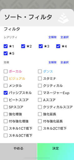 2について良く分からない方もいると思うので、もう少し詳しく説明すると、フォトの編成画面で「パッシブスキル」にのみチェックを入れてください。
