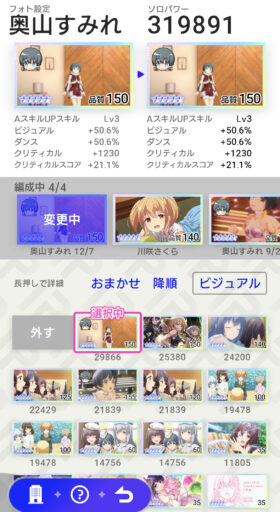 そのため、このようなスタミナを消費できるフォトのパッシブスキルによってギリギリセーフすみれのスキル発動条件を満たすことができます。