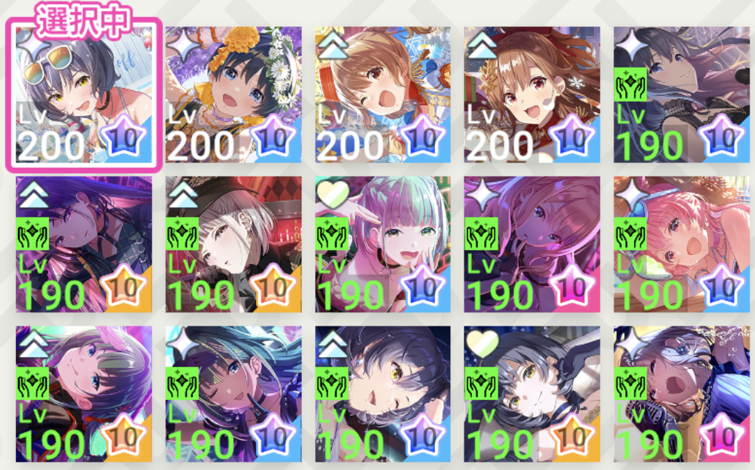 ただし、初心者から中級者の方はレアリティの上がりやすい初期アイドルに投資してレベルアシストのアシストLvを引き上げていくことをオススメします。★10アイドルがそれなりに揃っている方は(レッスンピースさえあれば)アシストLvをMAXの200Lvにできるかと思いますので、初期アイドルにこだわる必要は無いかと思います。