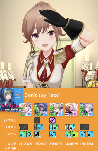 スキル成功率上昇効果によってAスキルの獲得がしやすくなります。加えて相手同レーンアイドルにスタミナ消費増加効果を付与することによってこちらもスキル獲得に繋がるスキルです。