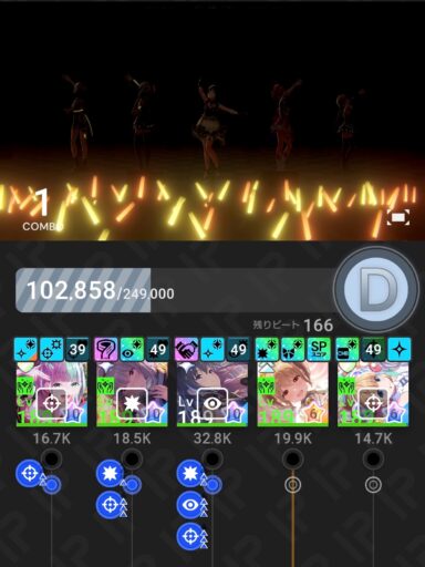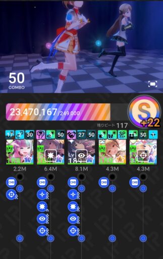 ライブスキップをしないでライブを見た場合、SPスキルやAスキルのタイミング以外にも細かい点(ビート)が存在し、その度に少しずつスコアが増えていきます。