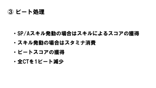 ③ SP/Aスキルの発動、スコアの獲得と全CT1ビート減少 ※この③の工程を「ビート処理」と呼ぶことにします。
