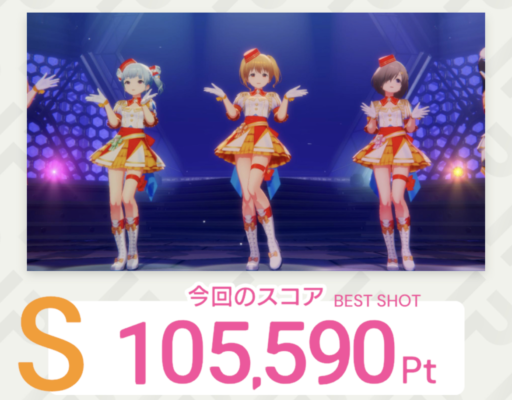 ※3枚目がどうしても10万点程度のフォトしか撮影できませんでした。ライブ後半のシーンであればもっとスコアが伸びるかもしれませんが、周回性などを考えて序盤のシーンで試行錯誤しています。