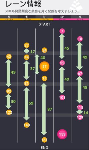 ビジュアル主体で戦うこともボーカル主体で戦うこともでき、様々な編成が考えられる譜面となっている。センターレーンは本日実装されるフェス芽衣がライブボーナスの噛み合いなども含めて相性が良く、所持できた場合は積極的に編成を検討できる。