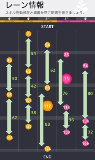ライブボーナスは誰かがスコア上昇状態の時、スコアラータイプ2人に7段階スキル成功率上昇効果。スコア上昇効果はかなり多くのアイドルが所持しているスキルであり、発動できるライブボーナスもレーン獲得に繋がる内容であるため確実に起動するようにしたい。ライブ特徴はライブバトルとしてはよくあるパターンであり、基本的にはSPスキルの獲得でスコアを伸ばしていけば問題ない。