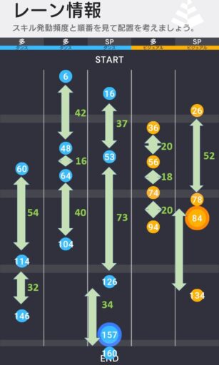 右2レーン目はAスキル2つ持ちアイドルでもCTが回らないが、スコアライブとは違ってそこまで気にするする必要は無い。