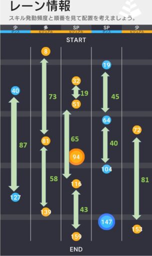 スコアラーをSPレーンそれぞれに配置する無難な構成もあり得るが、どちらかのSPスキルへのバフを特化する構成も面白い。