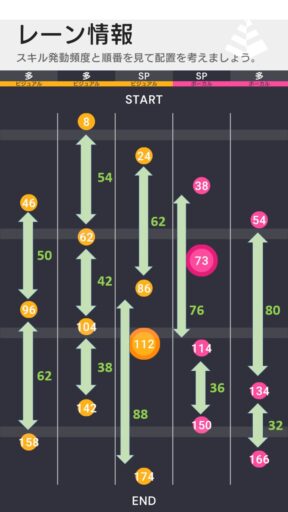 今回の譜面はCT30以下となる部分がないため、純粋なステータス勝負になりやすく、あまり小細工が効かない譜面となっている。そのため、基本的には相手のデバフアイドルに気をつけつつ、しっかりとSPスキルを取れるような無難な編成が多くなると思われる。