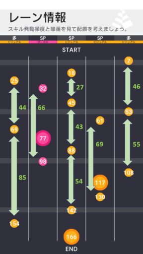 ★2の花火さくらのPスキルを110ビートで発動させたいため、117ビートのSPスキルまでコンボが途切れないことが活かせるための条件となる。