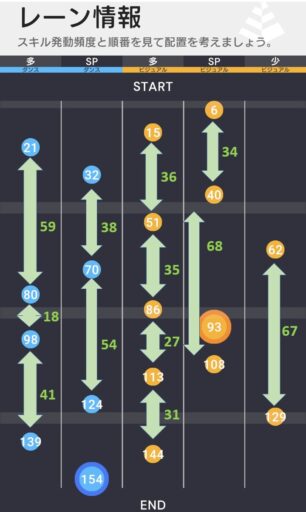 21ビート目のフェス怜のAスキルが獲得できればフェス琴乃のPスキルが発動し強化効果移動が発生するため、SPスキルの獲得にかなり有利となる。