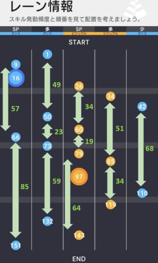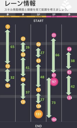また、Aスキルスコア倍率が2.5倍である一方でSPスキルスコア倍率が掛からないのでAスキルの獲得も重要になる。全体的なスキル獲得が可能な編成としたい。