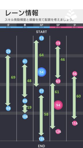 ボーカルレーンは若干バフを盛りづらいレーン配置となっているため、場合によってはダンスレーンに絞った編成とすることも考えたい。