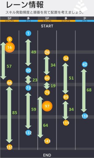 センターと最左はAスキルを獲得ができれば相手センターのスタミナを大きく削ることができ、後半のスキル獲得に有利に働く。