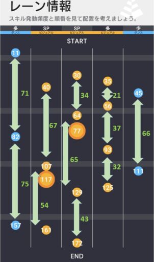 左2レーン目はスキルが詰まっているため、全てのAスキルは発動できないが、Pスキルだけでも仕事ができるため問題ない。