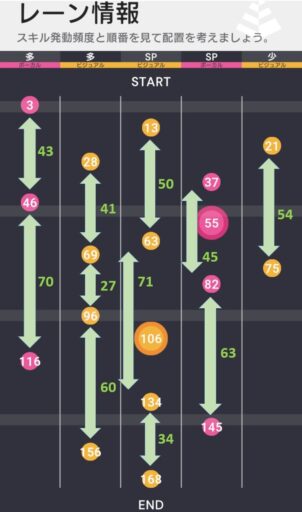 SPスキルは比較的バフを掛けやすい位置に存在していることもあり、高段階のビジュアルステータス上昇、スキル成功率をSPスキルに向けて掛けていくことが重要である。